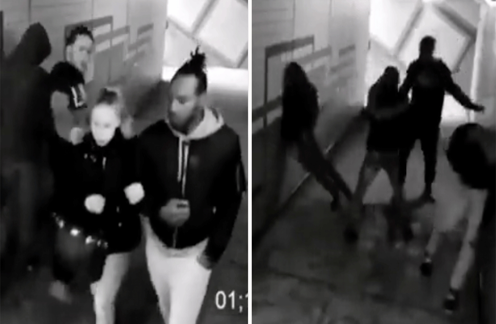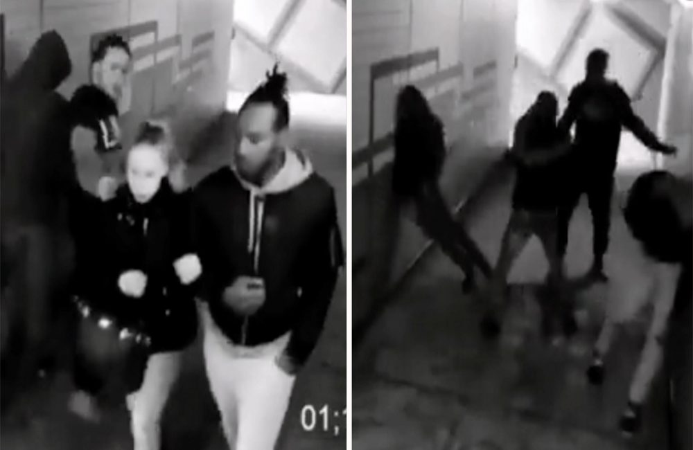 Gelukkig worden er steeds meer camera’s op straat opgehangen zodat er toezicht gehouden kan worden op plekken waar dit soort incidenten zich vaak voordoen. In dit geval praten we over een voetgangerstunnel waar een stel doorheen loopt. Op het moment dat ze twee mannen passeren botst één van de mannen tegen het meisje aan, en raakt haar aan bij haar haren. Haar vriend is het daar duidelijk niet mee eens.