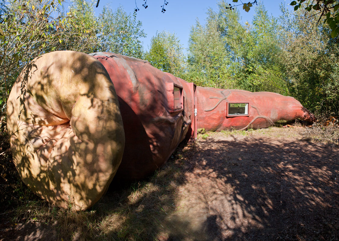 De Nederlandse ontwerper Joep van Lieshout heeft dit unieke hotel een passende naam gegeven: CasAnus. Opmerkzaam is dat zelfs de blinde darm nog aan het kunstwerk zit.