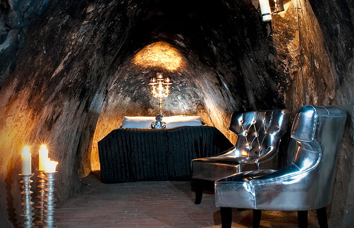 In Silver mine Hotel daal je 155 meter af naar je hotelkamer. Er is geen internet, geen uitzicht op een mooi landschap en een ontbijt bestellen doe je met een walkie-talkie. Het is het diepst gelegen hotelkamer ter wereld, een ware uitdaging voor mensen met claustrofobie.