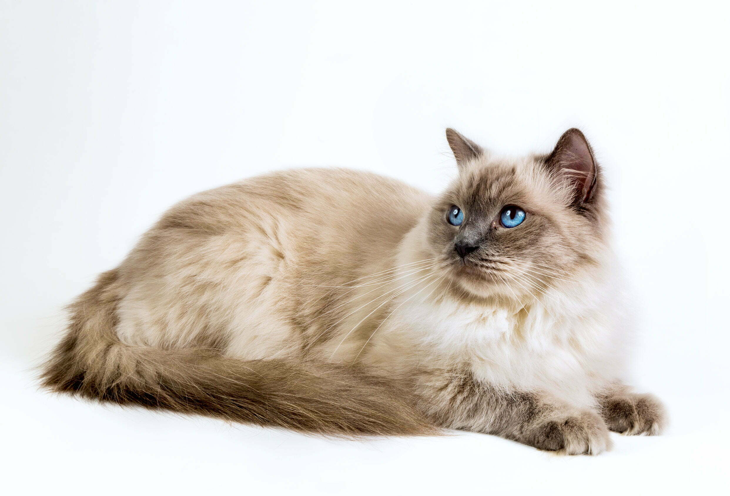 De heilige birmaan heeft een zachtaardig karakter en de zachtste vacht in dit lijstje. Ze zijn niet zo groot als de maine coon, maar de vacht neemt wel veel volume in beslag. Verwar de heilige birmaan niet met de ragdoll.