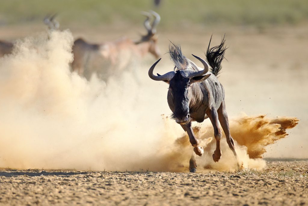 Een andere naam voor een gnoe is een ‘wildebeest’. Hij ziet er groter en trager uit dan een antilope maar laat je niet misleiden. Dit zoogdier kan een top snelheid behalen van wel 82 km per uur.