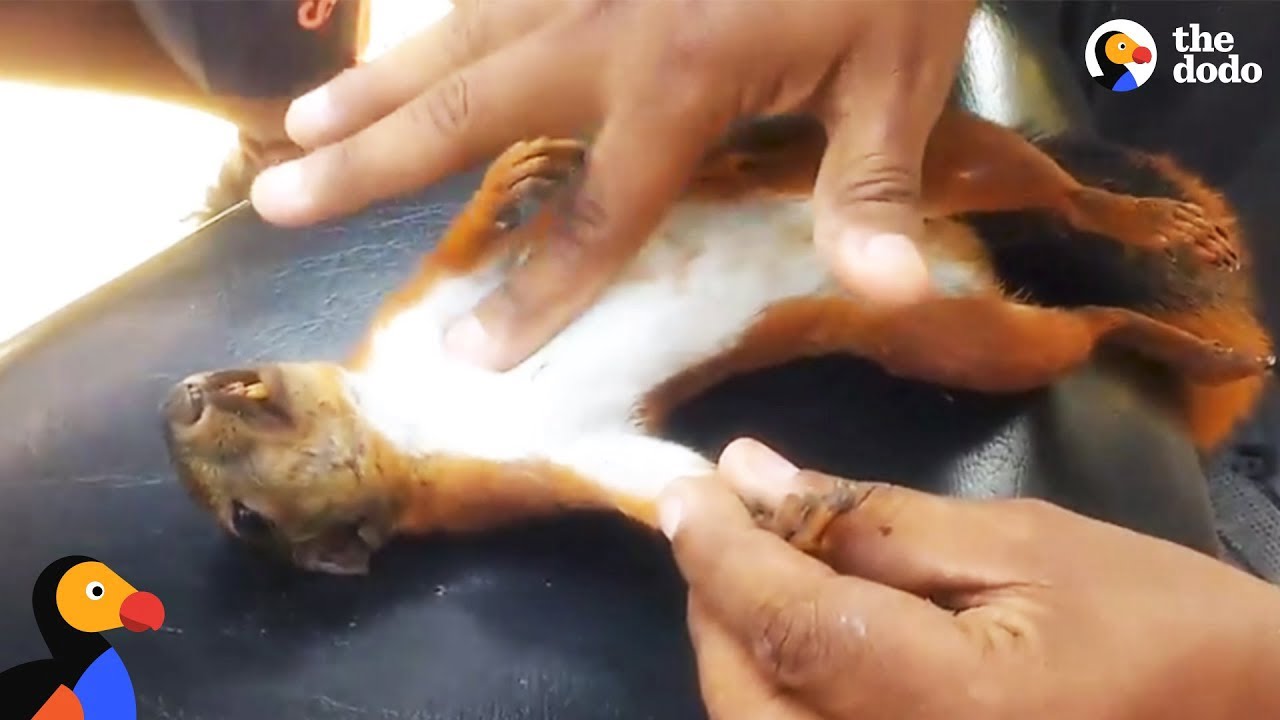 Elk leven is er eentje. Dat moet de aardige man, die deze arme eekhoorn heeft gereanimeerd, hebben gedacht. Het beestje maakte de levensgevaarlijke fout om op een elektriciteitskabel te gaan zitten, waarna ze schokkend ter aarde stortte.