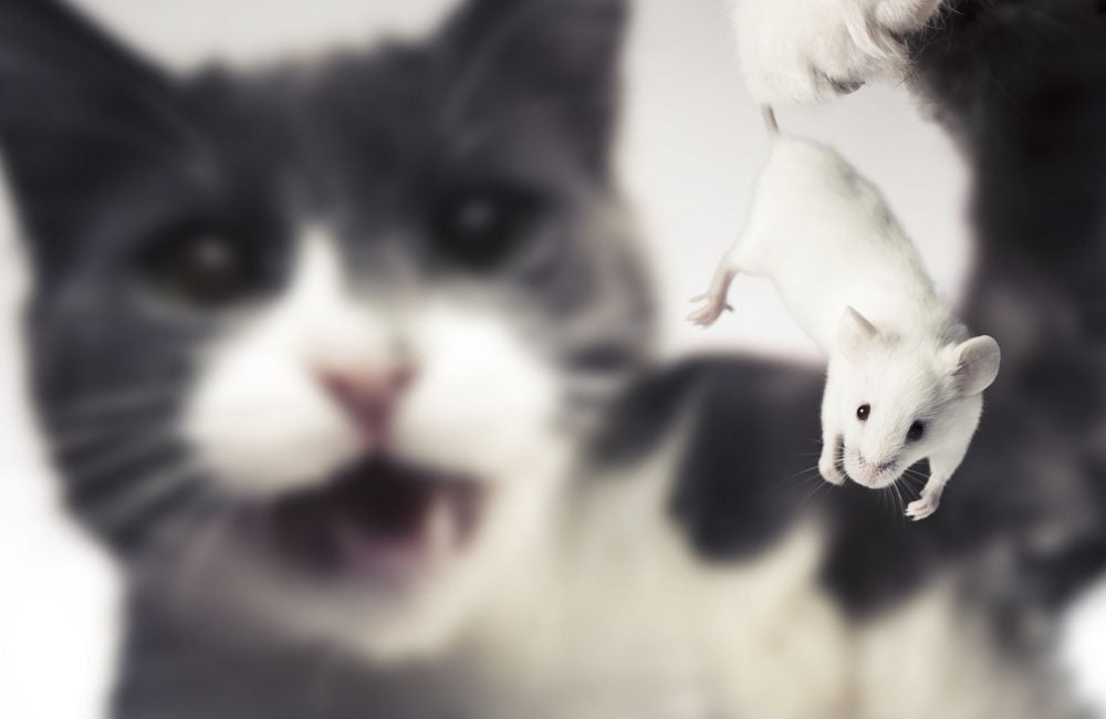 Ook de luiste en dikste huiskat heeft een jachtinstinct en dat verdwijnt ook nooit. Het spelletje met het bolletje wol is voor je kat ook meer dan een spel. Het is de jacht en dat zit tot in het diepst van de genen van het roofdier dat de kat nu eenmaal is. Ratten zijn slimme knaagdieren en de angst voor katten zit er goed in. Zodra er een kat in de buurt is, zal een rat zich verstoppen en uit zicht blijven tot het roofdier is verdwenen. Dat maakt een rat een moeilijke prooi voor een kat. Daarnaast is een flink uit de kluiten gewassen rat ook een tegenstander van formaat.