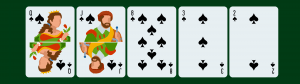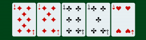 Weer een stapje hoger kom je de Straight tegen. Hierbij kan je een onafgebroken reeks maken van vijf kaarten. Denk bijvoorbeeld aan 2 – 3 – 4 – 5 – 6 of 9 – 10 – Boer – Vrouw – Koning. Hierbij maakt de soort van elke kaart niet uit. Het komt wel eens voor dat je een Straight kan maken met alleen maar dezelfde soort kaarten, maar dat heeft weer een hogere waarde (lees verder).