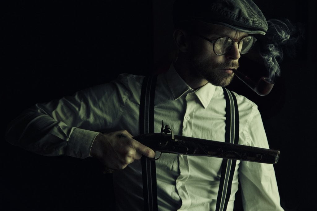 Wel zien we nog regelmatig mannen in een Peaky Blinders kostuum. Dit jaren 20 kostuum bestaat uit een driedelig tweed pak met strikje of stropdas en een zogenoemde ‘’flatcap’’. Om de outfit helemaal af te maken hoort er ook nog een lange overjas en worker boots bij.