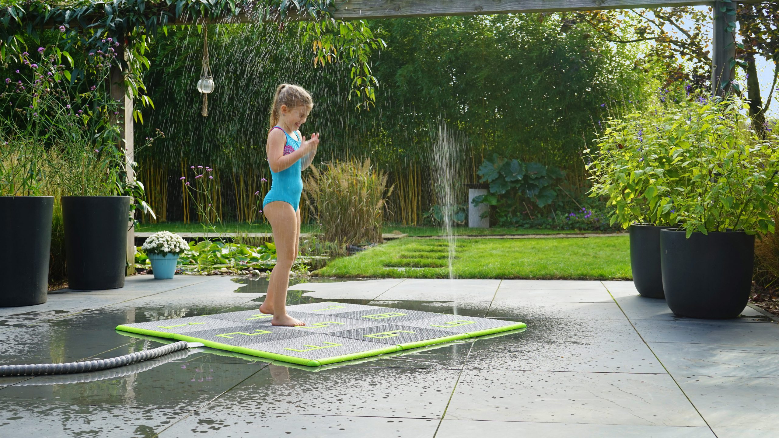 Dat waterspellen het goed doen in de zomer is natuurlijk niet zo gek. Maar het favoriete buitenspeelgoed van dit moment zijn de interactieve waterspeeltegels. Deze set met speeltegels brengt een klassiek waterspel samen met moderne techniek, want je kunt de fonteintjes besturen met je smartphone. Zo zie je maar dat je ook met je telefoon kan buitenspelen!