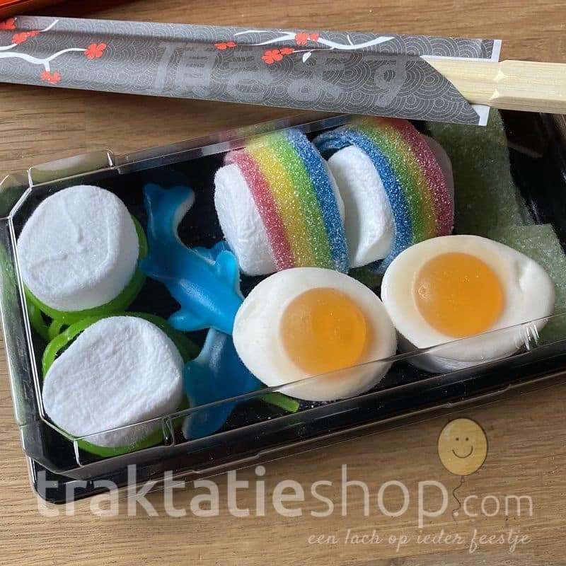 In de afgelopen jaren is sushi in ons land steeds populairder geworden. Eet je graag zelf samen met je kind sushi? Dan is het onwijs leuk om sushi als verjaardag traktatie te geven. Met deze bak sushi is het op en top genieten voor de ontvangers. De bak met sushi bestaat namelijk uit meerdere lekkere snoepjes.