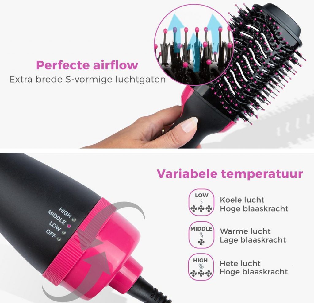 Met de LifeGoods 3-in-1 Föhnborstel Rond doe je echt op een snelle manier jouw haren. Dit is vooral te danken aan het feit dat de föhnborstel de werking van drie apparaten overneemt: