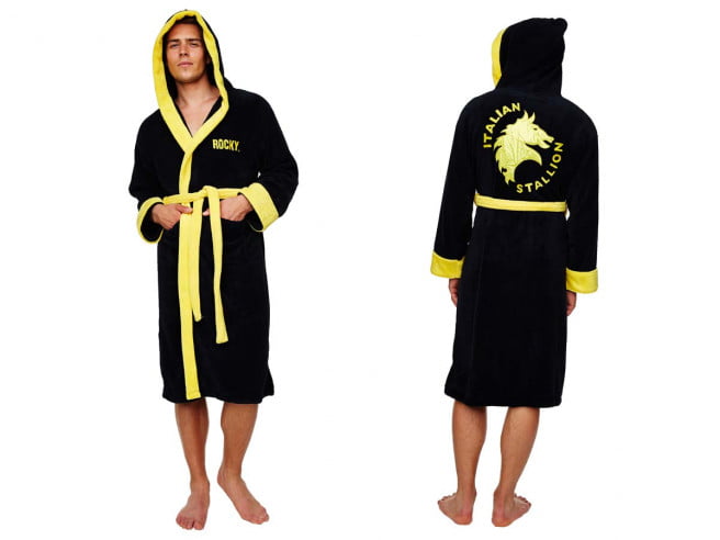 Lig je net lekker op de bank te zappen, ziet jouw man ineens Rocky voorbij komen. Ja dan weet je het natuurlijk al, dan mag je niet meer verder zappen. Is jouw man ook zo'n grote fan van Rocky ‘The Italian Stallion' Balboa? Ga dan voor deze Rocky badjas zodat jouw man iedere ochtend sterk wakker wordt.