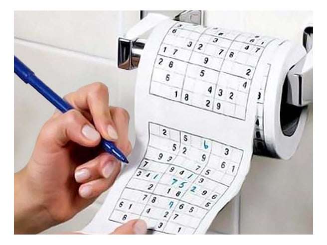 Zit jouw man ook altijd een eeuwigheid op de wc? Geef hem dan wat sudoku toiletpaper cadeau! Zo zit hij niet een uur lang naar zijn telefoon te staren, en is hij nog productief bezig ook! Elke puzzel op de rol is anders waardoor je altijd weer een nieuwe uitdaging hebt. Foutje gemaakt? Dan frommel je hem gewoon op en spoel je hem door!