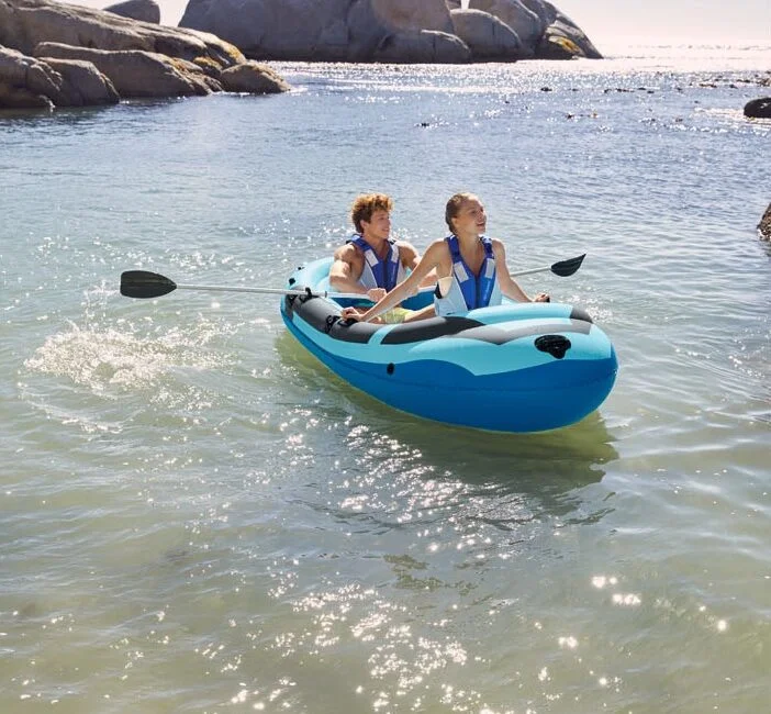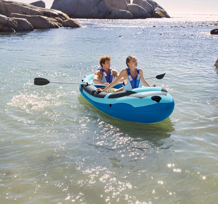 Deze opblaasbare boot doet niet onder voor andere kwalitatief goede boten. De lange legger-bodemconstructie zorgt voor een prettig zitcomfort en een prima stabiliteit tijdens het varen. Je beweegt jezelf voort met de bijgeleverde aluminium peddels, die simpelweg in- en uit te klappen zijn door middel van een kliksysteem. De bladen zijn extra versterkt, zodat je ook met een tegenstroming prima vooruit komt.