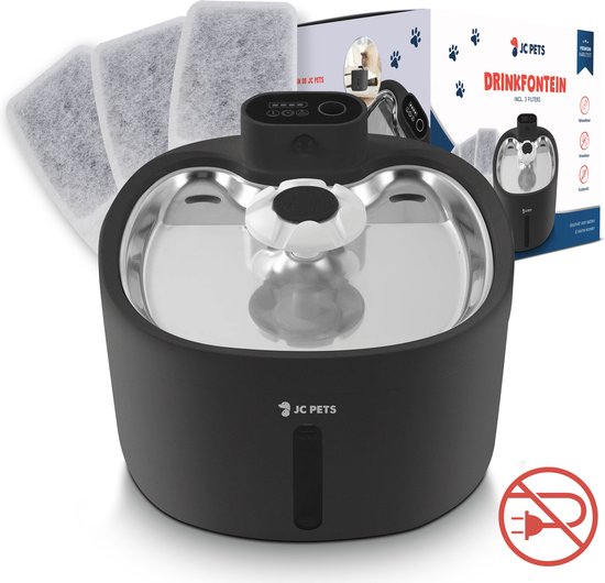 JC Pets Premium RVS Draadloze Drinkfontein voor Kat of Hond