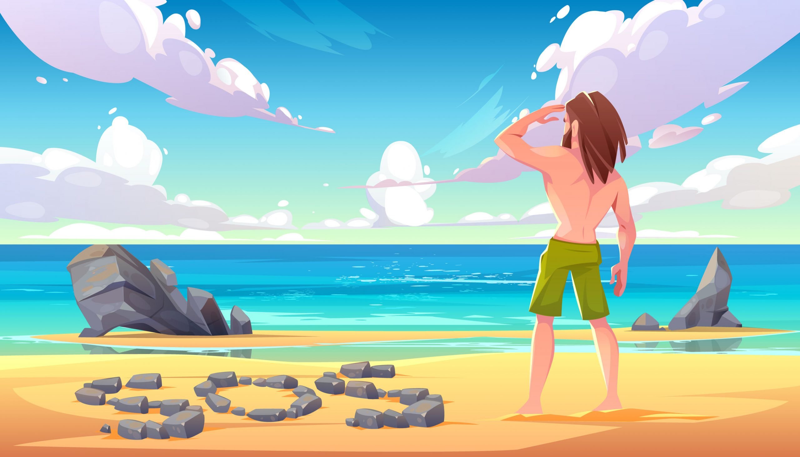 En last but not least: een S.O.S baken. Je wilt uiteraard op tijd thuis zijn voordat die nieuwe Netflix serie uitkomt, dus moet je de aandacht trekken van voorbijgangers. Een groot S.O.S teken op het strand en een dikke rookpluim vanaf het hoogste punt van het eiland geeft je iets meer kans om opgemerkt te worden.