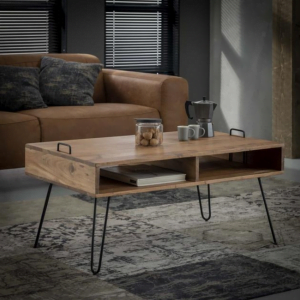 Wil je een tafel met opbergruimte die makkelijk te bereiken is? Dan is de salontafel Cardiff een goede optie. Deze salontafel is uitgevoerd in acaciahout met twee open ruimtes onder het tafelblad. Hier kan je makkelijk spullen opbergen, zoals tijdschriften of een afstandsbediening.