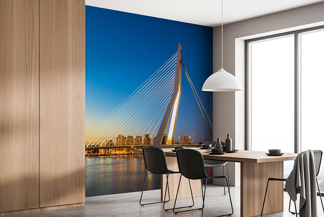 Heeft de stad Rotterdam een speciaal plaatsje in jouw hart? Dan kan je die liefde thuis nog eens extra uitten door een muur te beplakken met fotobehang van de Erasmusbrug.
