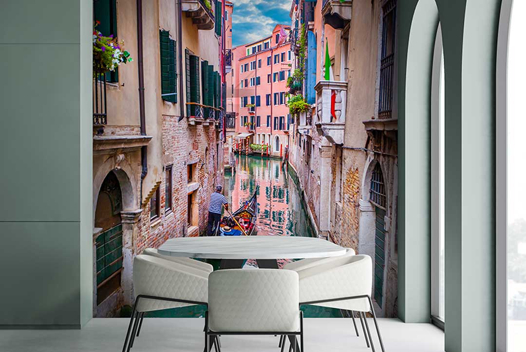 Als je van een kunstzinnige vibe houdt, kan je ook voor muurbehang kiezen zoals je op de onderstaande foto ziet.