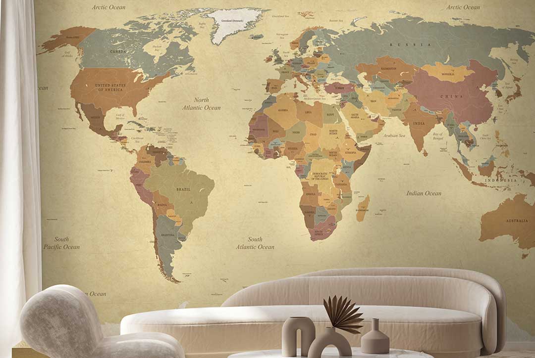 Wat je ook bij veel mensen ziet hangen is een wereldkaart. Met een keuze voor fotobehang kan je dit ook doen en lekker groots uitpakken. Hierbij kan je tevens met plakkertjes aangeven welke speciale plekken op de wereld je allemaal hebt bezocht.