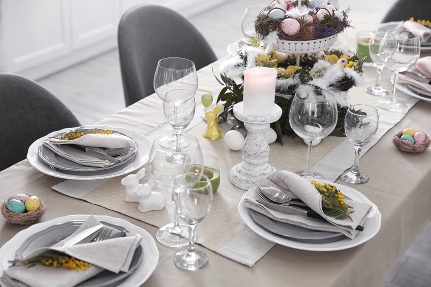 Kleed je tafel verder aan met servetten, naamkaartjes, wat takken in een vaas of een bosje tulpen. Naast een feestelijke setting kan het interieur ook veel toevoegen aan de sfeer in je keuken of woonkamer.