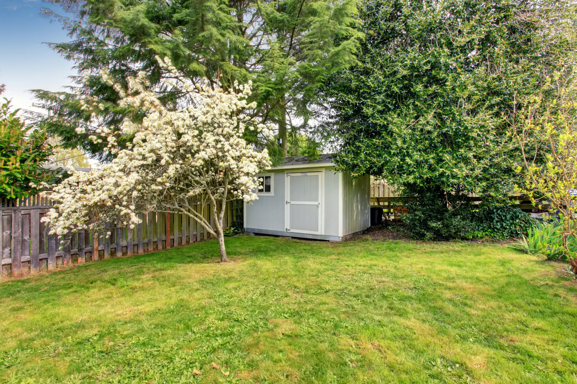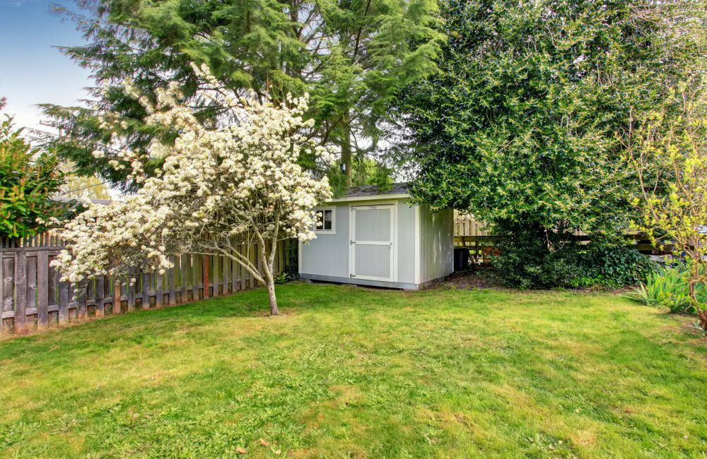 👉 Bekijk wat trending is →Een opgeruimde tuin met een kunststof tuinhuisje
