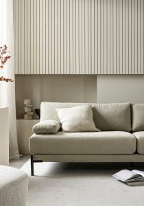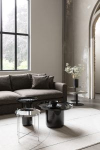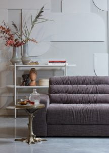 Zoals ik net al zei draait het dit jaar ook om statement items en echte eyecatchers. Daarnaast zien we ronde vormen nu overal en in elk meubelstuk. De organische vormen geven een zachte uitstraling aan ons interieur. Ook in de banken, en die gaan dit jaar een belangrijke rol spelen. Dus mocht je een grote woonkamer hebben, dan kun je twee vliegen in één klap slaan! Ga voor een grote, royale, ronde bank en je hebt meteen een statement item in je woonkamer. Voeg er een mooie bijzettafel en verschillende kussens aan toe voor de finishing touch.