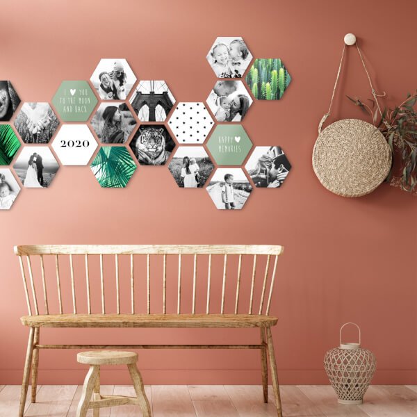 Je kunt je muur helemaal uniek maken door de vormen die te kiezen zijn. Of je nu kiest voor vierkant, rond of de welbekende hexagon. Alleen jij kunt bepalen hoe jij je fotomuur samenstelt. De mensen die bij je komen zullen versteld staan van jouw unieke muur vol met herinneringen. Daarnaast kun je je herinneringen ook afwisselen met standaardafbeeldingen. Ideaal om te doen als je niet zoveel foto’s hebt die je geprint wilt hebben, maar toch het liefst een mooie gevulde muur wil hebben. Daarnaast kun je deze standaardfoto’s natuurlijk ook afwisselen met jouw mooiste herinneringen om de muur nog unieker te maken.