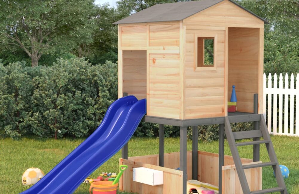 Speelhuis massief vurenhout met glijbaan en zandbak