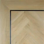 Je kunt kiezen voor een zogenoemde kleine visgraat of grote visgraat. De kleine visgraat, ook wel traditionele visgraat genoemd, is een visgraat in het formaat 60×12 cm of kleiner. Zoals de naam al zegt kies je met een kleine visgraat voor een vloer met een klassieke(re) uitstraling. Deze kun je eventueel nog benadrukken met een band en bies. Op onderstaande foto zie je het effect van band (de zwarte lijn) en bies (buiten de lijn) in combinatie met een PVC visgraat.