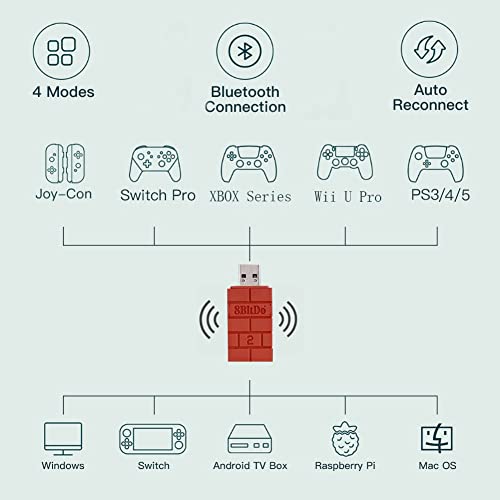 Ben je het zat om voor elk platform een andere controller te gebruiken? De 8Bitdo Wireless USB Adapter 2 is dé oplossing om al je controllers aan te sluiten, of je nu op de Switch, PC, Android of Raspberry Pi speelt. Deze compacte bruine adapter ondersteunt controllers van Xbox Series, PS5, PS4, PS3, Joycons en Switch Pro. Plug-and-play, geen gedoe, gewoon gamen!