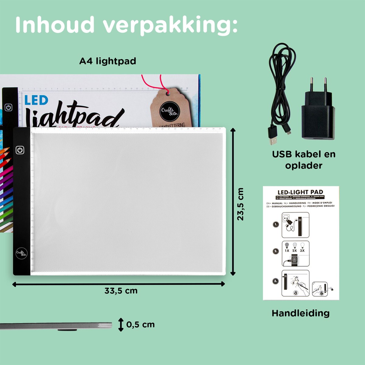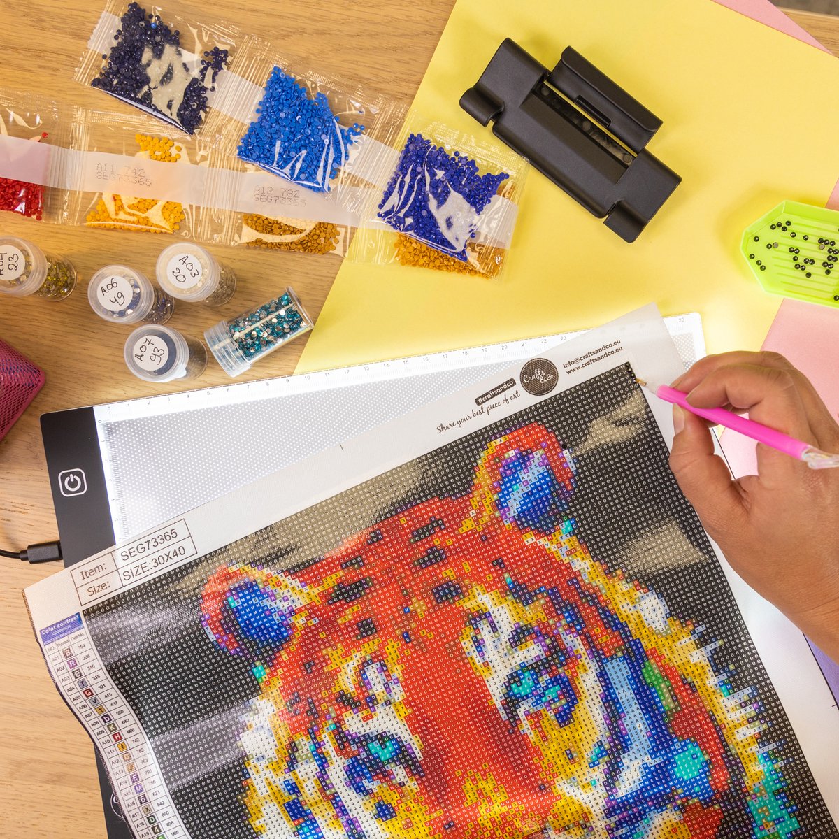 Ben je dol op Diamond Painting of wil je jouw tekenskills naar een hoger niveau tillen? Dan is deze A4 Lightpad van Crafts&Co een absolute must-have. Deze lichtplaat met LED-verlichting maakt het superhandig om patronen over te trekken of steentjes precies te plaatsen. Of je nu een kind bent dat houdt van knutselen of een volwassene die ontspant met een hobby, dit tekenbord is voor iedereen een uitkomst.