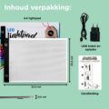 Het LED-licht is instelbaar in drie standen, zodat je altijd de juiste helderheid hebt, of je nu overdag of ’s avonds werkt. Met een formaat van A4 past hij makkelijk op elke tafel en is hij licht genoeg om mee te nemen. Gebruikers vinden vooral het gelijkmatige licht een pluspunt, al melden sommigen dat een opbergtasje handig zou zijn geweest. Goed om te weten: een adapter is niet inbegrepen, maar hij werkt ook op USB.