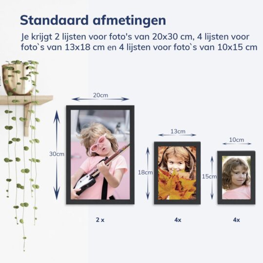 Geef je muur een persoonlijke touch met de ACAZA fotolijst collage. Deze stijlvolle zwarte houten lijst biedt ruimte aan 10 foto’s in verschillende formaten, perfect om je mooiste herinneringen te combineren. Of het nu gaat om vakantiekiekjes, familiefoto’s of spontane momenten, met deze collagelijst maak je in een handomdraai een kleine galerij in je woonkamer of slaapkamer.