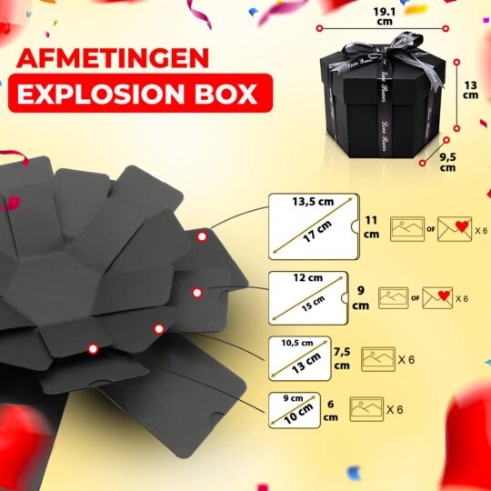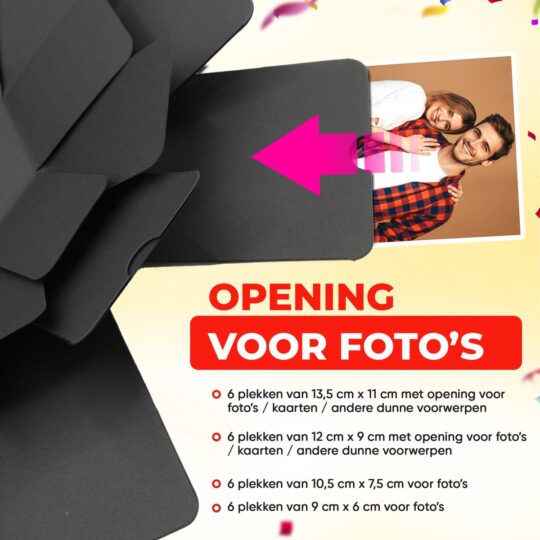 Op zoek naar een cadeau dat écht indruk maakt? De AWEMOZ Explosion Box is een creatieve verrassing die je helemaal zelf kunt personaliseren. Deze fotodoos ‘explodeert' zodra je hem opent, met ruimte voor foto's, boodschappen en kleine verrassingen. Ideaal voor verjaardagen, jubilea of gewoon om iemand te laten weten dat je aan ze denkt. Deze creatieve foto cadeaubox is gemakkelijk om te maken en voelt als een mini-tijdcapsule vol herinneringen.