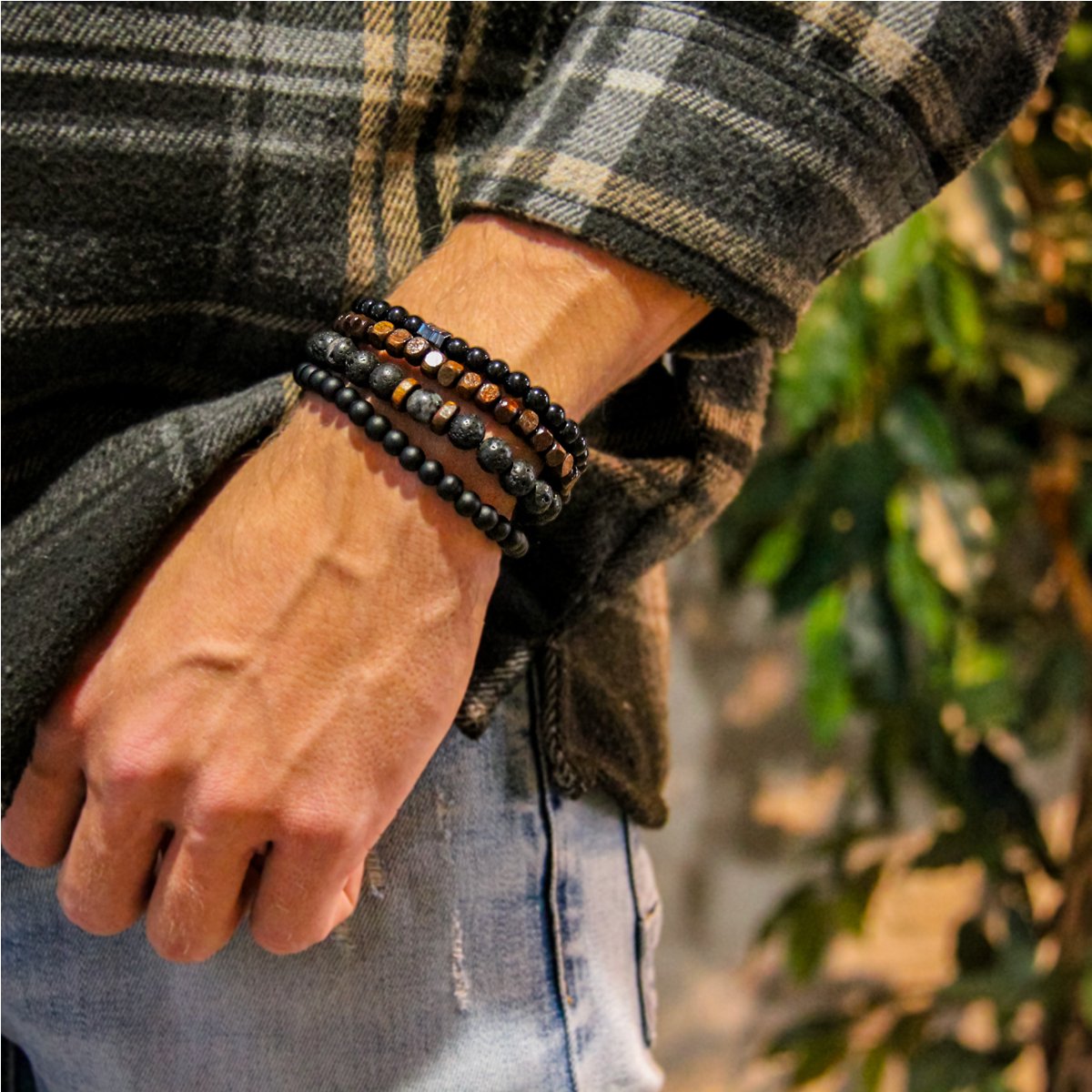 Ontdek de stoere AWEMOZ Natuursteen Multi Armband Set voor heren in bruin, zwart en grijs. Perfecte mix van stijl en kwaliteit. Bestel nu bij Trending.nl!