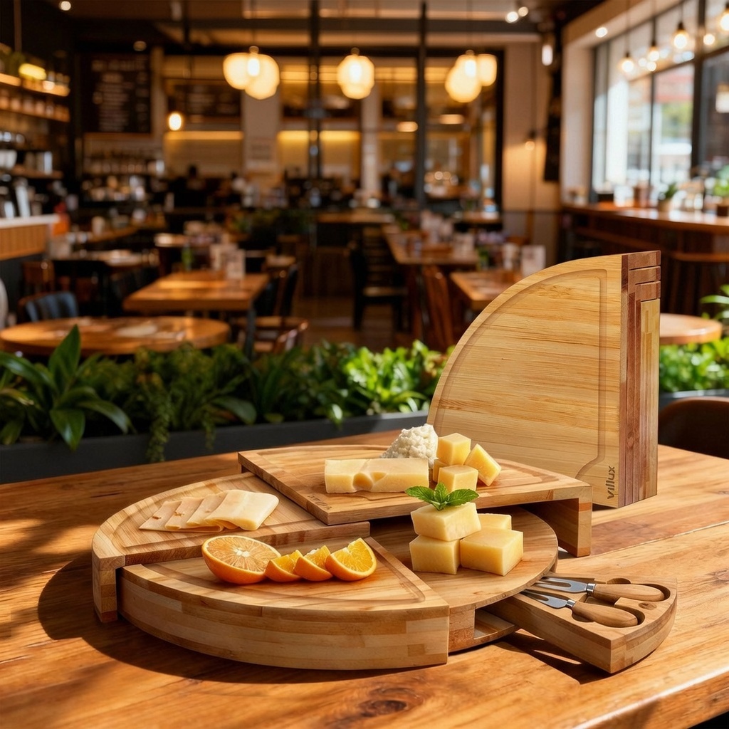 Ontdek de Villux Bamboe Tapasplank met uitschuifbare lade en kaasaccessoires. Stijlvol, handig en perfect voor borrels. Bestel nu bij Trending.nl!