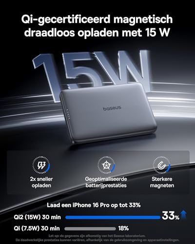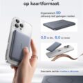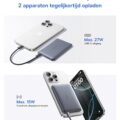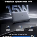 Deze compacte krachtpatser biedt 15W draadloos opladen en een razendsnelle PD 27W via USB-C. Gebruikers zijn vooral te spreken over hoe licht en draagbaar dit apparaat is – perfect voor in je tas of zelfs je broekzak. Een klein minpuntje? Sommige vinden de magnetische grip iets minder sterk bij dikkere hoesjes, maar zonder hoesje werkt het flawless.