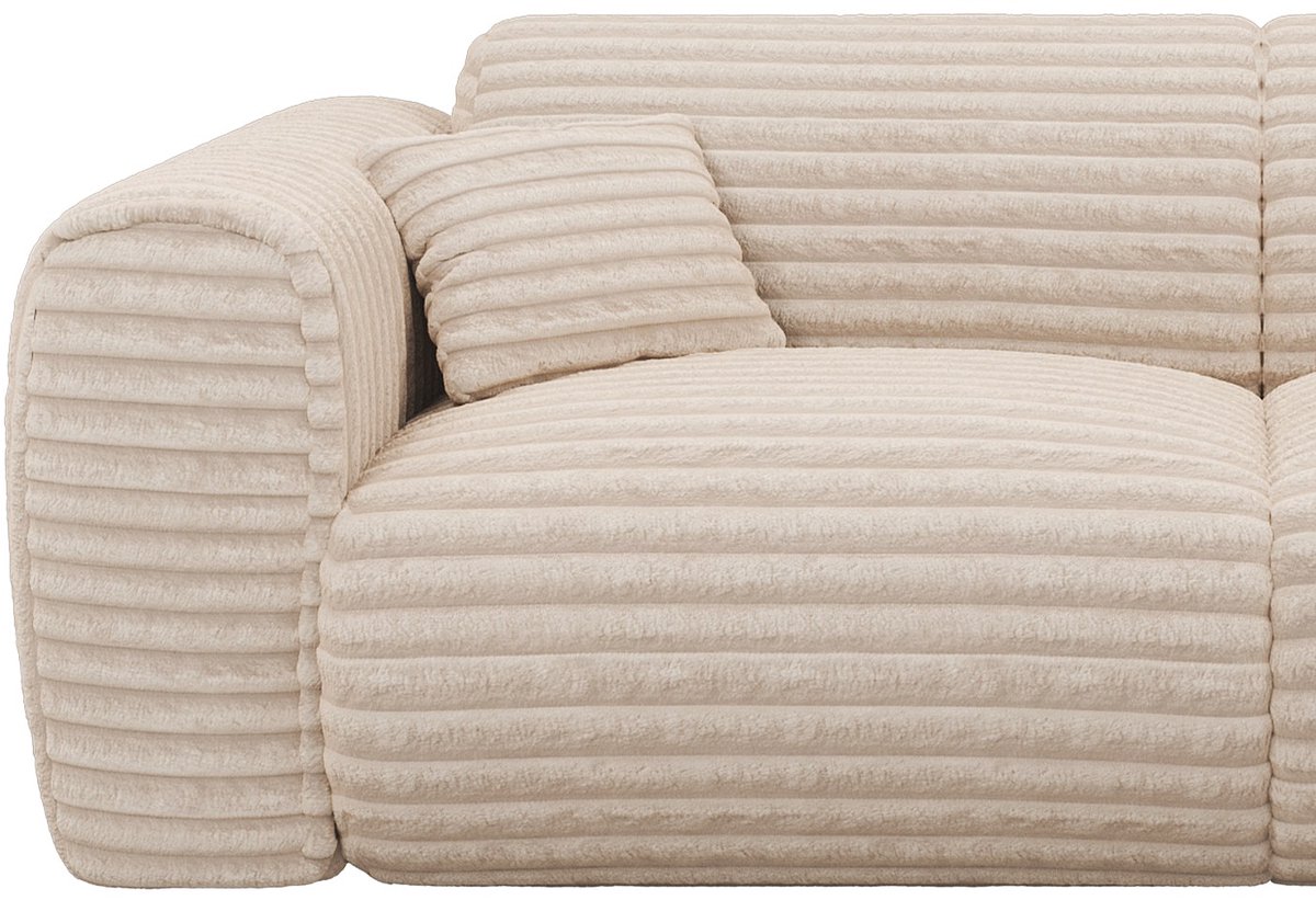 Wat deze beige ribfluwelen bank zo handig maakt, is hoe snel je ‘m ombouwt. In een paar simpele stappen tover je je zitplek om tot een comfortabel bed.