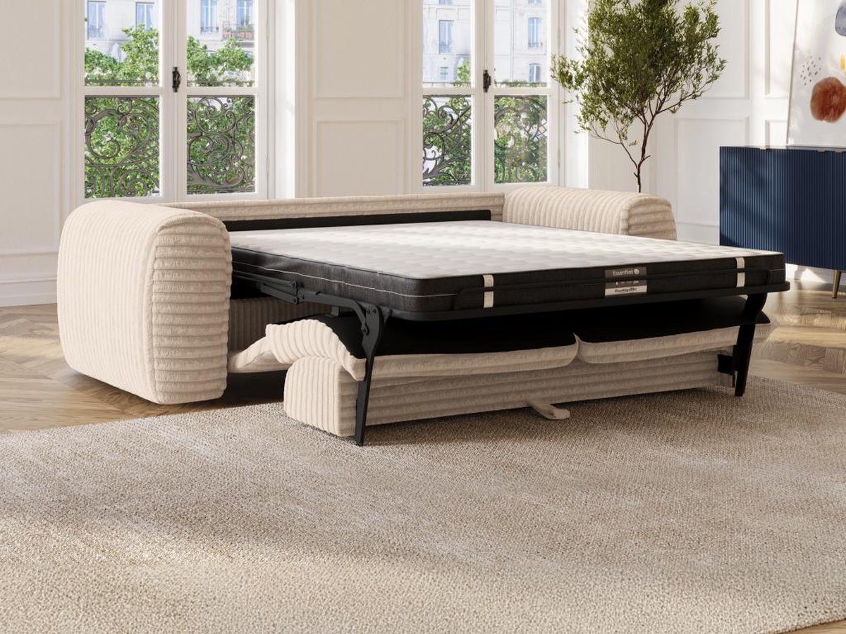 Ontdek de beige POGNIA slaapbank: stijlvol ribfluweel, 3 zitplaatsen en snel om te bouwen. Perfect voor kleine ruimtes! Bestel nu bij Trending.nl!