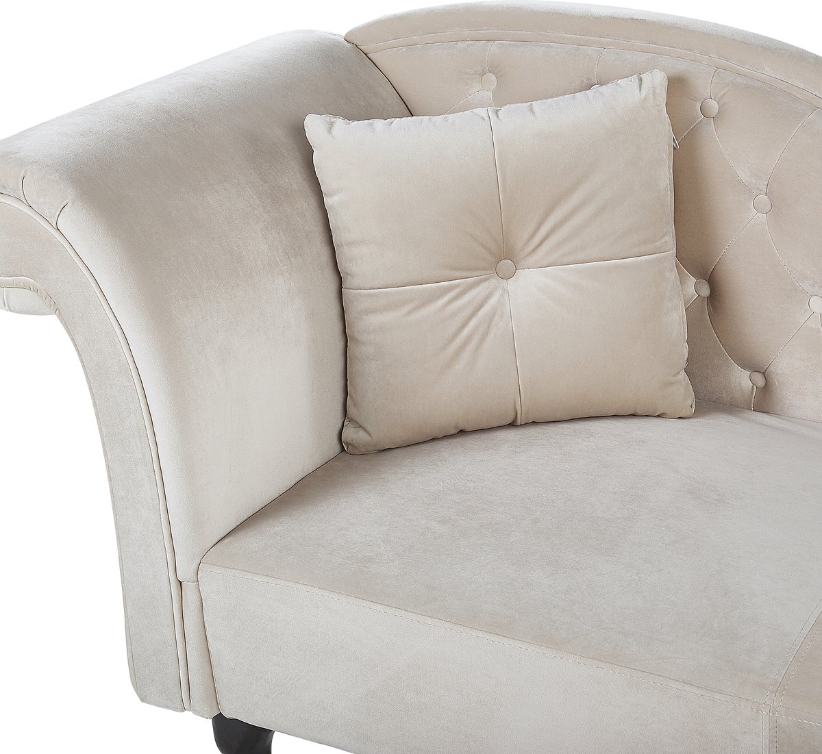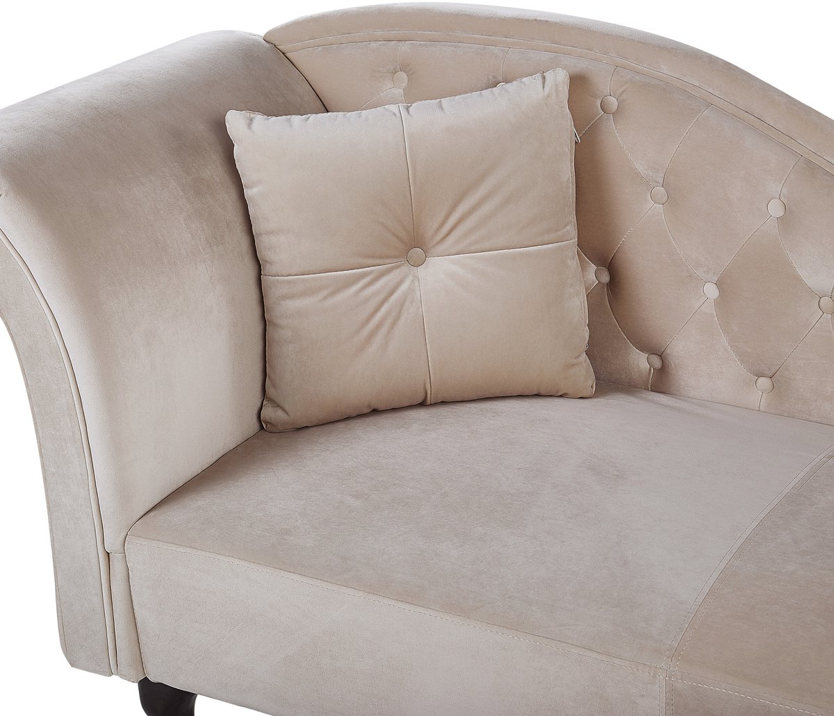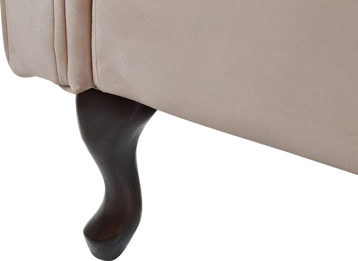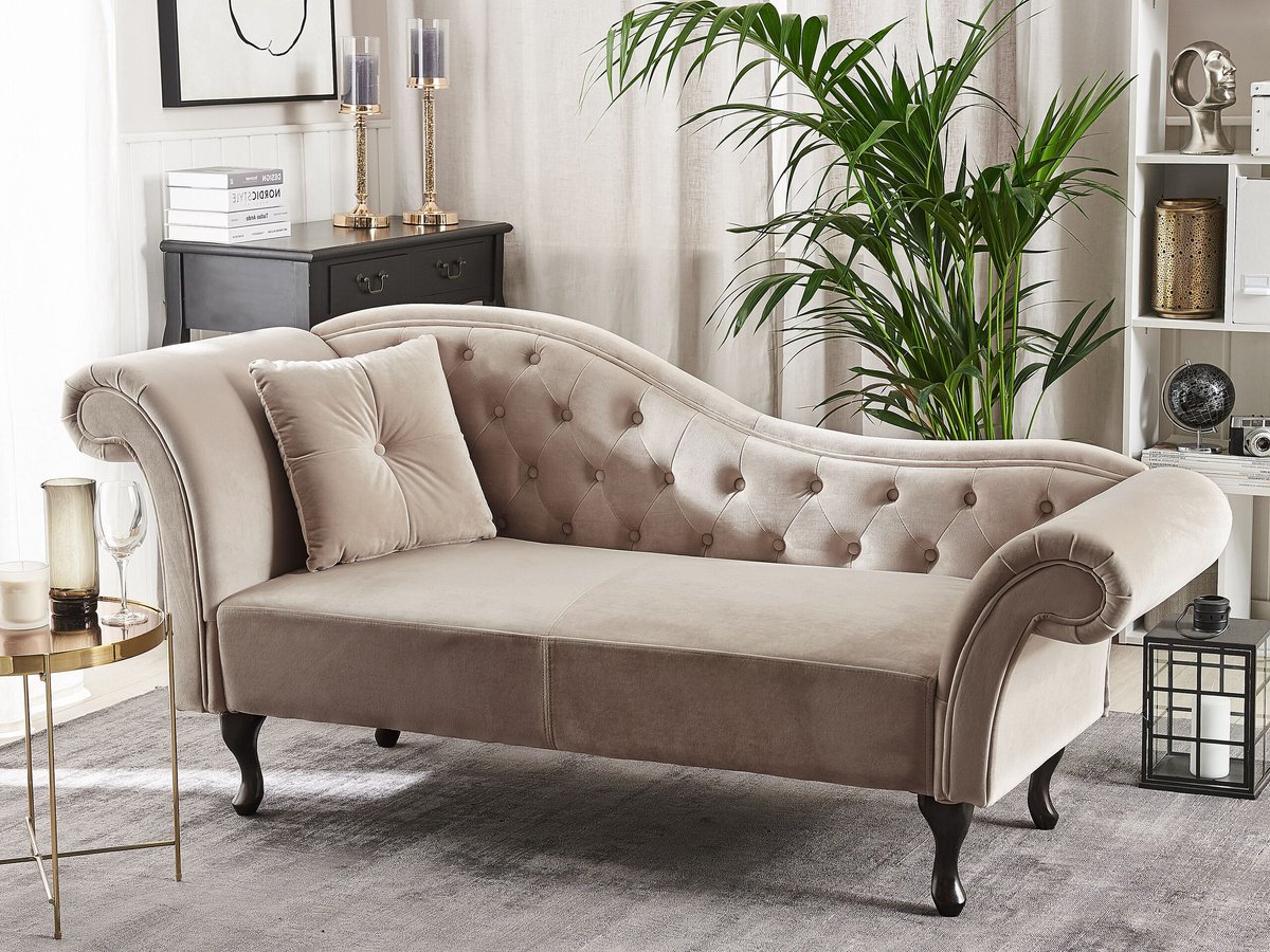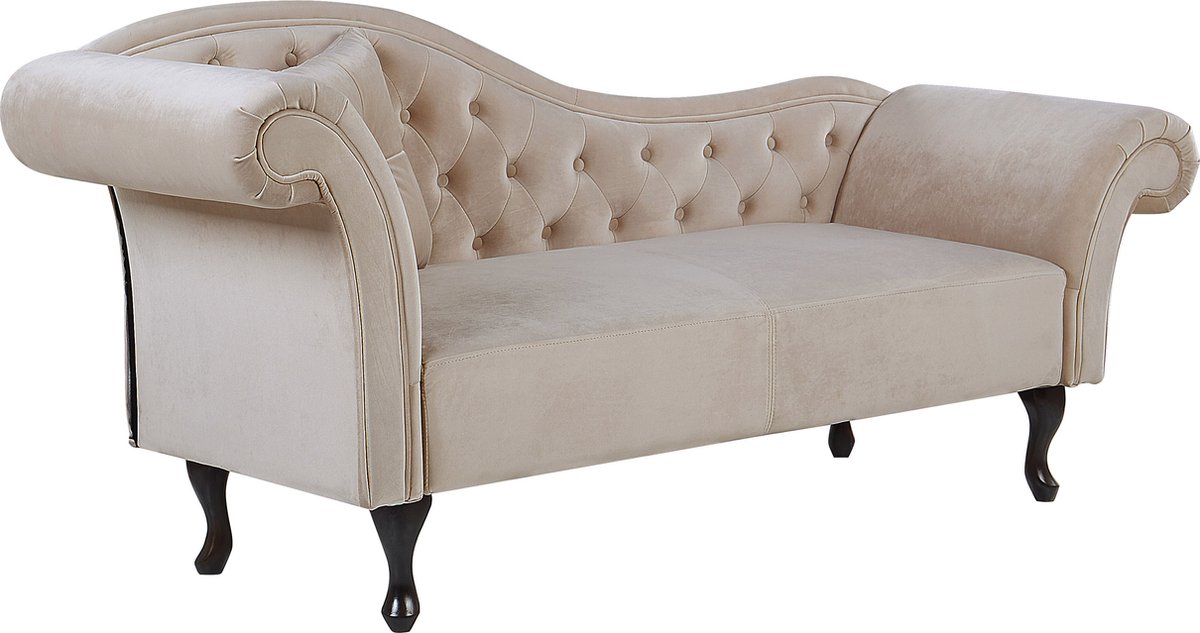 Ontspan in stijl met de BELIANI LATTES chaise longue in beige fluweel. Luxe design, perfect voor elk interieur. Bestel nu bij Trending.nl!