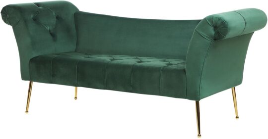 Ben je op zoek naar dat ene meubelstuk dat je woonkamer direct een upgrade geeft? Maak kennis met de Beliani Nantilly chaise longue in donkergroen. Dit prachtige item combineert elegantie met comfort en is een echte eyecatcher. Het fluwelen bekleding voelt zacht aan en geeft een warme, luxe uitstraling aan je interieur. Perfect voor een ontspannen middag met een goed boek of gewoon om even lekker te loungen.