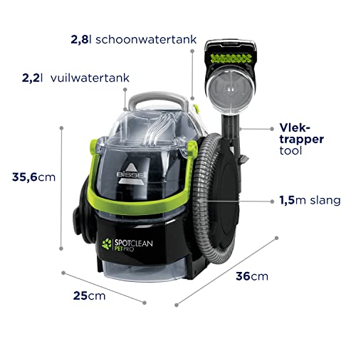 Heb je een huisdier dat graag zijn pootafdrukken achterlaat op je tapijt of bank? Geen stress meer! De BISSELL SpotClean Pet Pro is dé oplossing voor hardnekkige vlekken en geurtjes. Deze compacte tapijtreiniger is een absolute topper, zeker voor huisdierbezitters. Met ruim 17.000 reviews is het zelfs een bestseller op Amazon – en dat snap je meteen als je ‘m gebruikt.