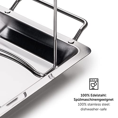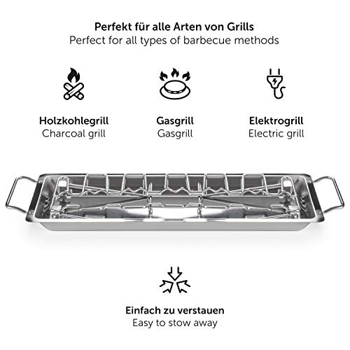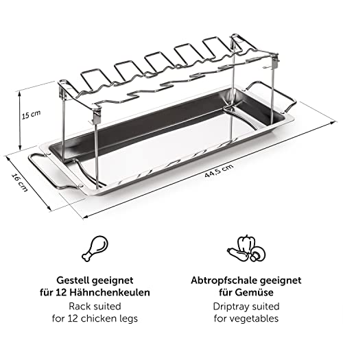 Ben je klaar om je BBQ-game naar een hoger niveau te tillen? Met de Blumtal BBQ Kip Houder grill je in één keer 12 kippenpoten, zonder gedoe of omdraaien. Dit slimme rek van roestvrijstaal zorgt ervoor dat je kip gelijkmatig gaart en die lekkere, krokante buitenkant krijgt waar iedereen dol op is. En het mooiste? Na afloop gooi je ‘m gewoon in de vaatwasser. Geen schrobben, gewoon genieten!