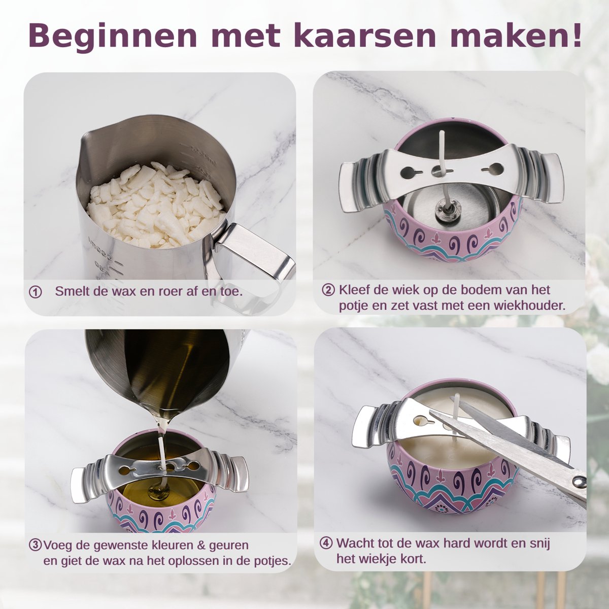 Ben je op zoek naar een creatieve hobby of een uniek cadeau? Met de Candilio Kaarsen Maken Set tover je in een handomdraai je eigen geurkaarsen tevoorschijn. Deze set is superhandig voor beginners en gevorderden die graag experimenteren met geuren en kleuren. Of je nu een gezellige sfeer wilt creëren of een persoonlijk kerstcadeau wilt maken, dit is jouw go-to!