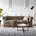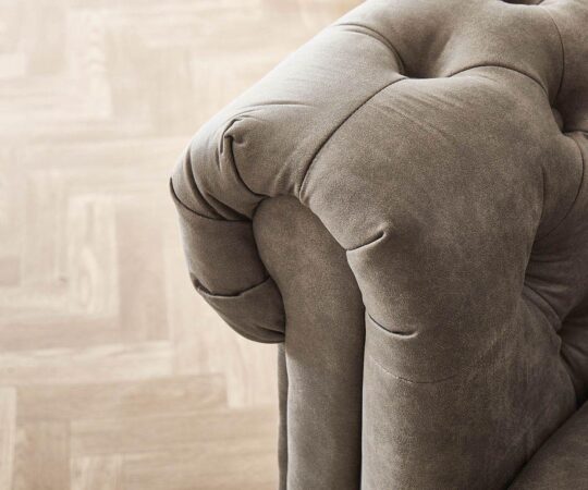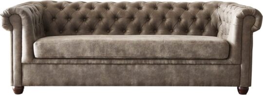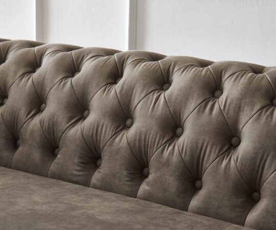 Ontdek de stijlvolle Chesterfield bank in taupe suède-look. Gewatteerd design, perfect voor 3 personen. Bestel nu bij Trending.nl!