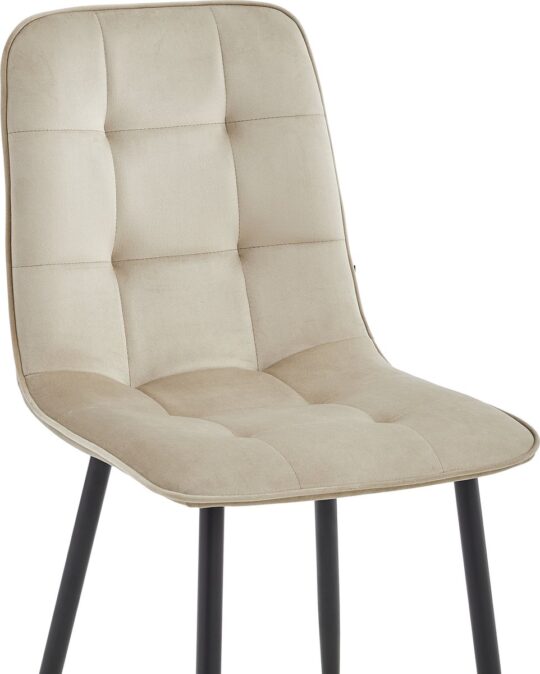 Op zoek naar een upgrade voor je eettafel? De Colenis Ela eetkamerstoel set van 2 is precies wat je nodig hebt. Deze beige stoelen van zacht fluweel combineren comfort met een stoer, industrieel design. Ze geven je interieur direct een moderne vibe, of je nu een minimalistisch of eclectisch huis hebt. Perfect voor lange diners of gezellige borrels met vrienden.