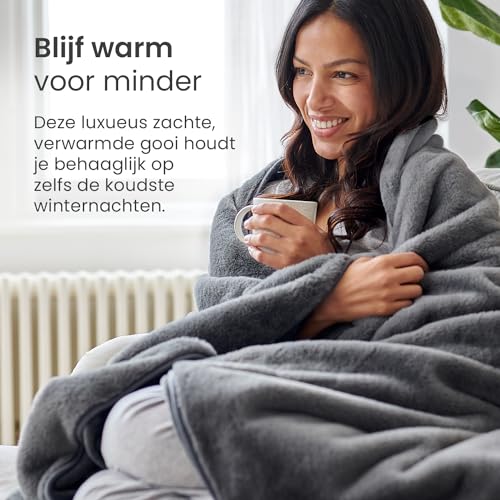 Wat deze deken extra handig maakt, is de 9-uurs timer. Stel ‘m in en hij schakelt vanzelf uit – ideaal voor wie soms vergeetachtig is. Ook fijn: de oververhittingsbeveiliging zorgt voor een veilig gevoel. En na een tijdje gebruiken? Gewoon in de wasmachine, want hij is wasmachinebestendig. Met afmetingen van 180×130 cm past deze grijze warmtedeken perfect op een eenpersoonsbed of als extra laagje op een groter matras.