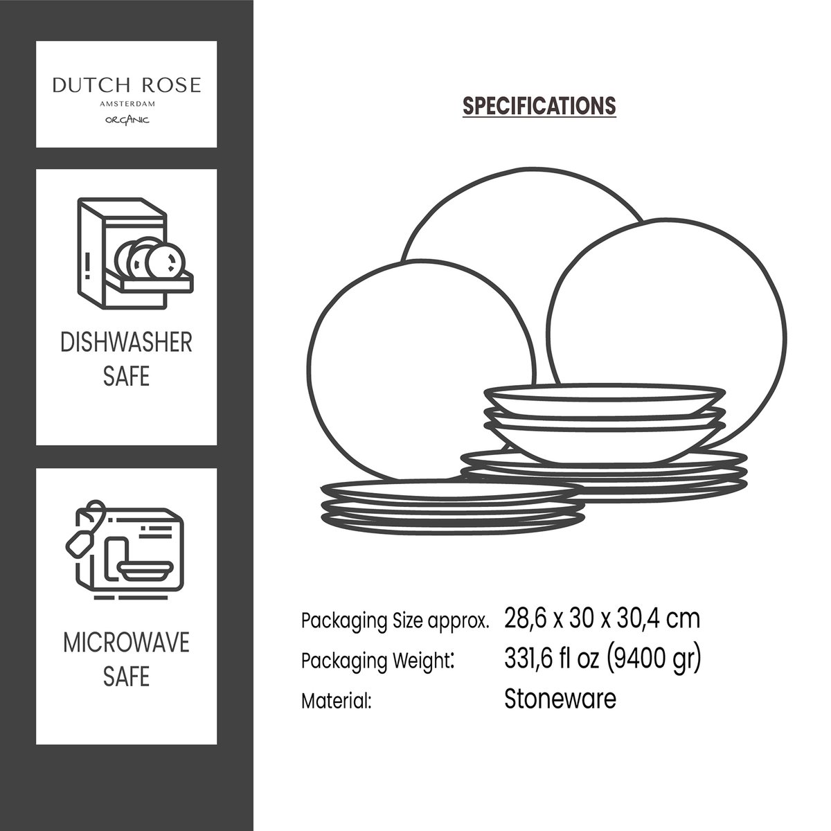 Deze 12-delige set, gemaakt van duurzaam stoneware, is met de hand afgewerkt en dat zie je meteen. Elk stuk heeft een unieke, organische look die je diner direct een stijlvolle touch geeft. Perfect voor dagelijks gebruik of als eyecatcher tijdens een etentje met vrienden.