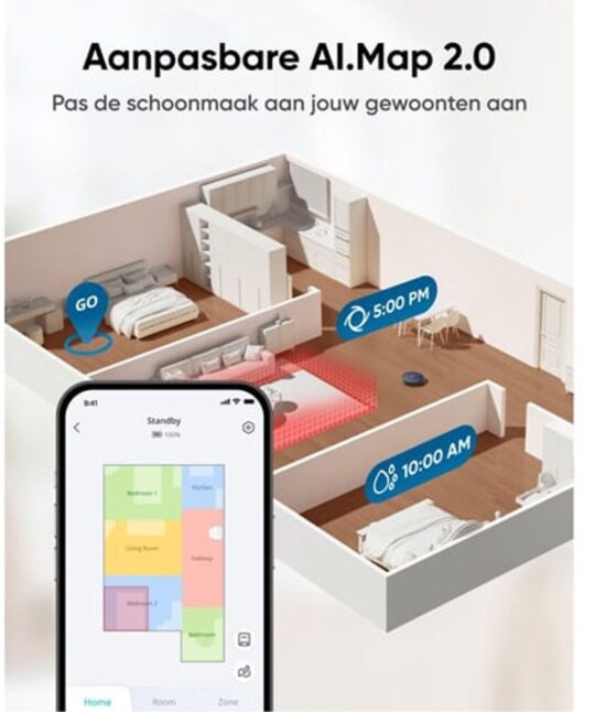 Ik was eerst een beetje sceptisch (“gaat zo’n ding echt goed schoonmaken?”), maar na een week ben ik om. Binnen een paar keer rijden kende hij het hele huis en nu is de benedenverdieping in 34 minuten helemaal schoon, zonder een hoekje over te slaan. Dweilen is net zo makkelijk: doekje eronder, water erbij en gaan. In de app zie je precies hoe lang de borstels en filters nog meegaan en je kunt een weekschema maken. Mijn enige spijt? Dat ik hem niet jaren eerder heb gekocht. Echt een gamechanger!