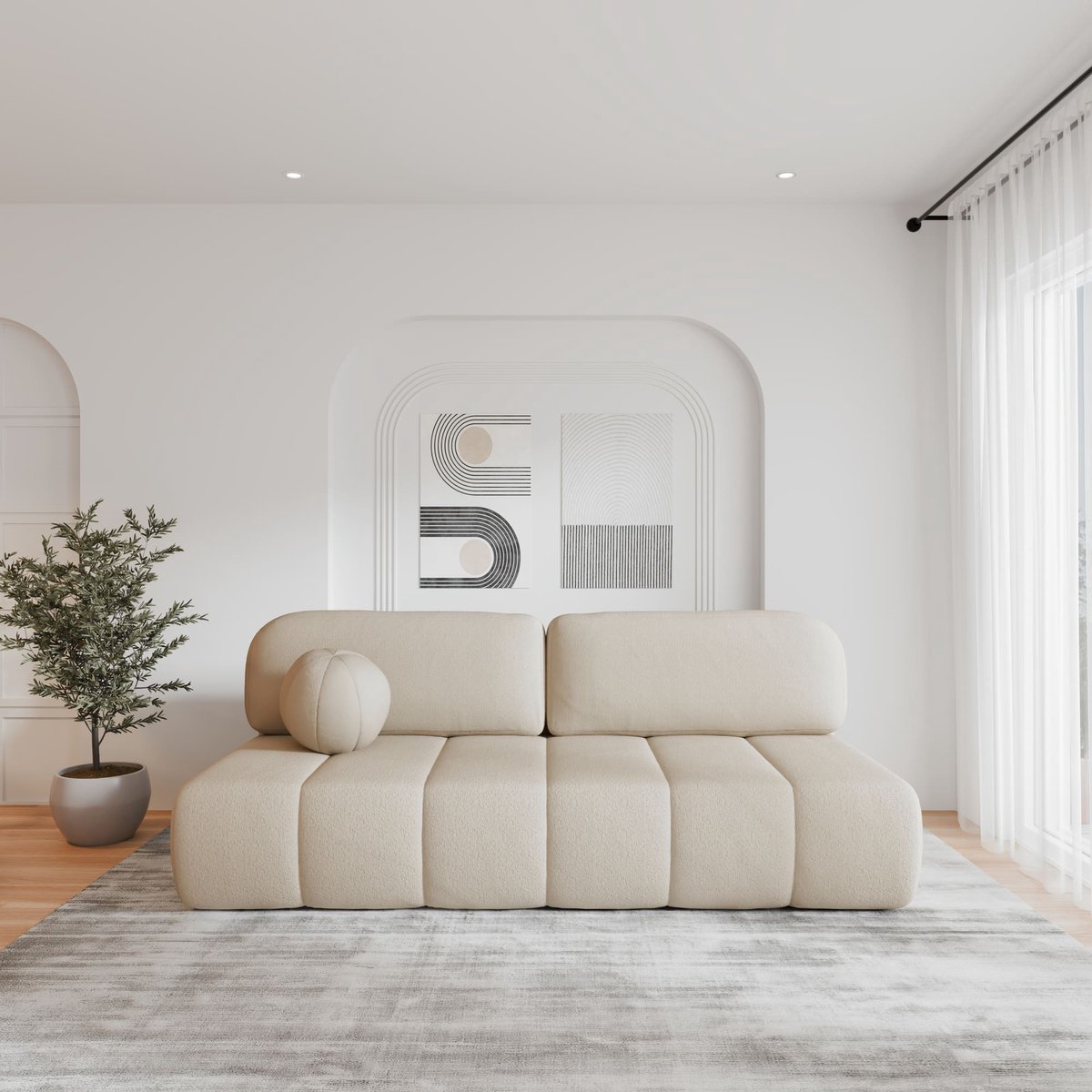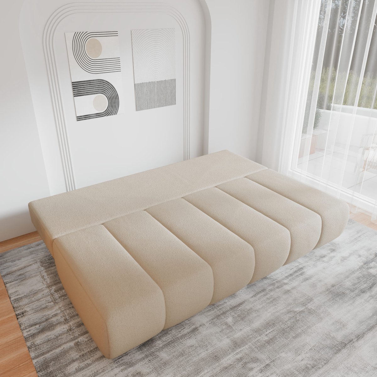 Ontdek de FLUFFY sofa in crème bouclé: comfortabel, met slaapfunctie en opbergruimte. Stijlvol design voor elk interieur. Bestel nu bij Trending.nl!