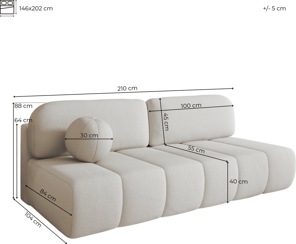 Met afmetingen van 210 x 88 x 104 cm (BxHxD) biedt deze gestoffeerde schoonheid genoeg plek om lekker te loungen. De relaxfunctie zorgt ervoor dat je na een lange dag helemaal tot rust komt. Gebruikers waarderen vooral het zachte bouclé materiaal – het voelt luxe aan en geeft je woonkamer een warme vibe. Een klein minpuntje? Het in- en uitklappen van de slaapfunctie vraagt even wat kracht, maar dat heb je zo onder de knie.