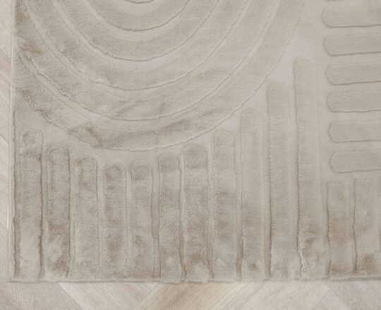 Japandi vloerkleed – Eve Taupe is beschikbaar in verschillende maten: 120×170 cm, 160×230 cm en 200×300 cm.